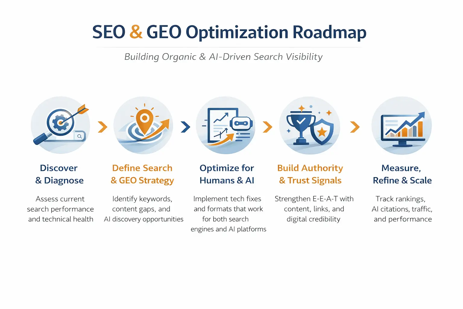 We combine technical SEO, content intelligence, and GEO-first strategies to ensure your brand is visible, trusted, and recommended across search ecosystems.