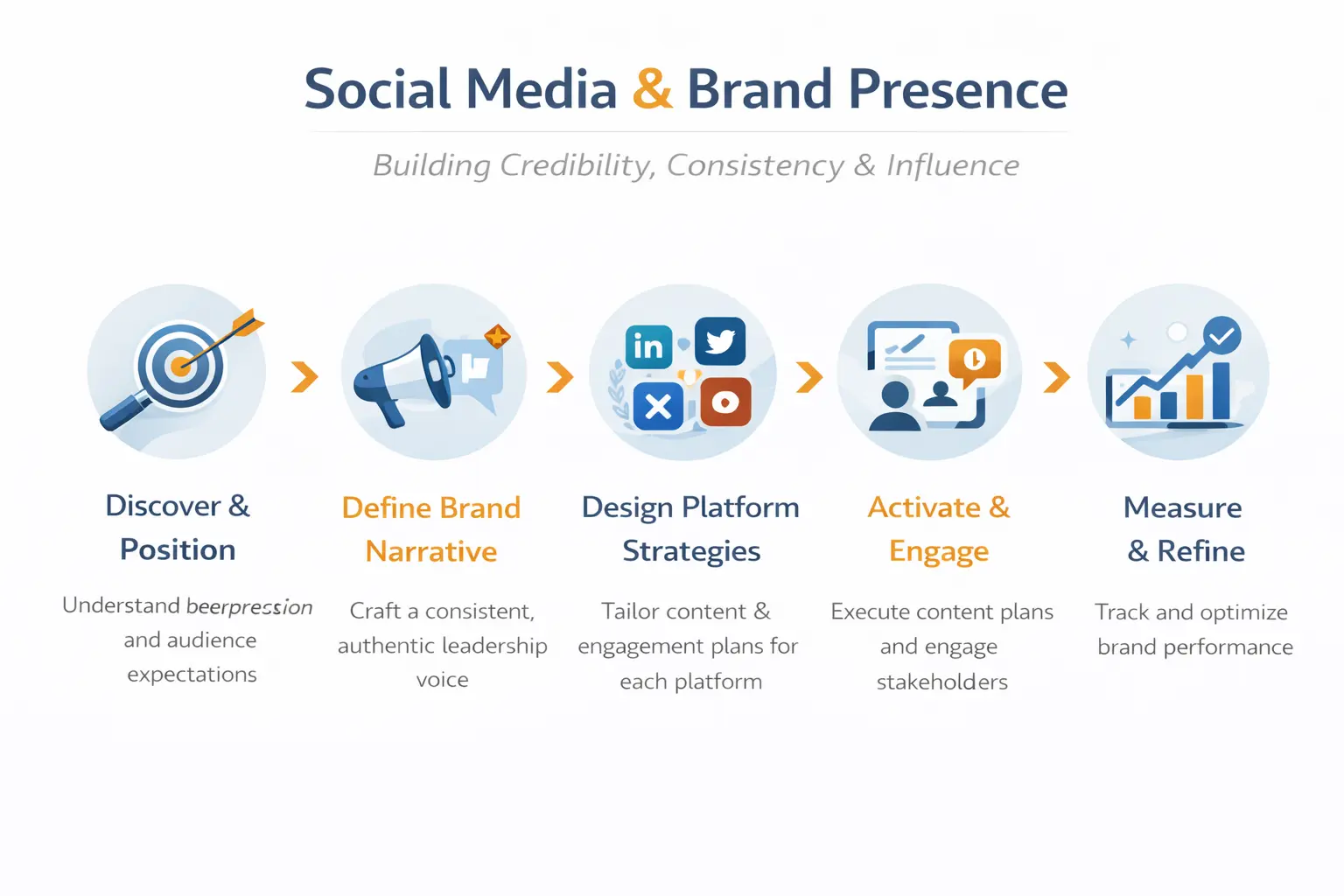 We focus on aligning brand narrative, leadership voice, and audience engagement to ensure your presence consistently reinforces trust, authority, and business value.